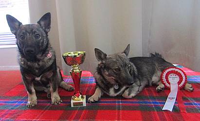 Westorps Athea Tiptop erhielt in der OK: CACA, CACIB, BOB und Alpensieger Lille Viking's Jarla Krigare in der ZK: v 1 Besitzerin beider Hunde: Sandra Egli |