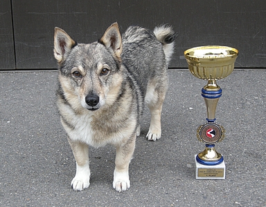Nur am Samstagmorgen wurde ein Västgötaspets augestellt: VK Hündinnen V1, CAC, Bester Veteran, BOB, Jayka Des Pins Ardéchois. Eig. Gubler, Fleurianne, CH |